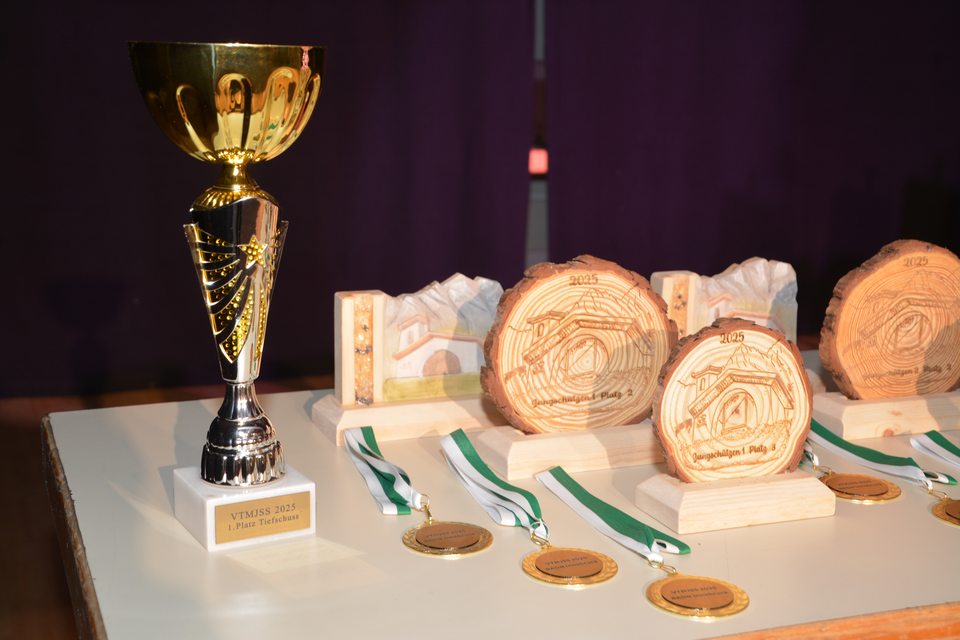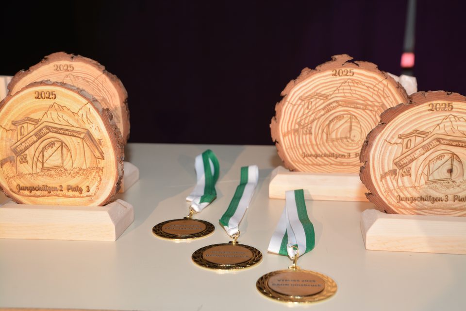 Die Siegerehrung fand im Veranstaltungssaal in Arzl statt, es gab für die Erstplatzierten (1-3 Platz) handgefertigte Preise mit dem Motiv der Jungschützenkapelle des Bataillon Innsbruck, deren 60 jähriges Jubiläum man 2025 feierte. Ein herzliches Vergelt´s Gott ergeht an Schütze Marco Buckovez, der die Hauptpreise unentgeltlich in mehreren Tagen hochwertig und eigenhändig geschnitzt hat. Zusätzlich gab es Sachpreise im Wert von fast € 600.-. Die würdigen Preise, die anwesenden Ehrengäste und die persönliche Übergabe der Preise durch Herrn Bürgermeister Johannes Anzengruber (Stadt Innsbruck) zeugten von der hohen Wertschätzung für die Jugendarbeit im Bunde der Tiroler Schützenkompanien.